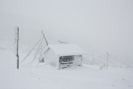 Dnes byla na hřebenech většinou mlha, teplota byla asi sedm stupňů pod bodem mrazu.