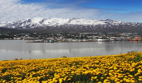 Na Akureyri je nejkrásnější jeho poloha, jeho okolí. Leží na západní straně nejdelšího islandského fjordu Eyjafjörður. Kolem dokola se táhne poměrně vysoké pohoří, které sahá do výšky přesahující 1200 metrů. Asi není třeba říkat, že celé okolí je bez vegetace, v podstatě se jedná o kus holé skály. Tedy v letních měsísích je pokryto nízkou zelenou trávou, v zimě naopak často mívá bílý nádech. Na Islandu je tak trochu „mimozemská“ krajina. Pokud budete procházet vnitrozemskou částí ostrova, můžete často opomenout fakt, že jste stále na planetě Zemi. A něco z praktického života: Na Islandu si za stromem opravdu jen tak neulevíte, neboť jsou tu vzácností.