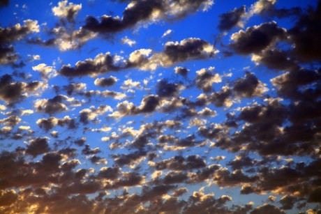 Brzký příchod frontálního systému lze však vypozorovat i ze samotné oblačnosti. Dobrým zvěstovatelem mohou být oblaka typu Altocumulus. Tento druh patří do oblačnosti středních pater, tj. výška od 2 do 6 000 m. Jedná se o specifické houfy malých bílých či šedých mraků, které často bývají pravidelně uspořádané a někdy také seřazené do vůči sobě rovnoběžných pásů. Pokud se k sobě navzájem přibližují, znamená to blízký příchod frontálního systému. Během pondělního dne byl tento jev k vidění například v severozápadních Čechách. A opravdu – v odpoledních hodinách došlo k přibývání oblačnosti spojené s frontálním systémem, který bude počasí u nás ovlivňovat v nejbližších desítkách hodin.