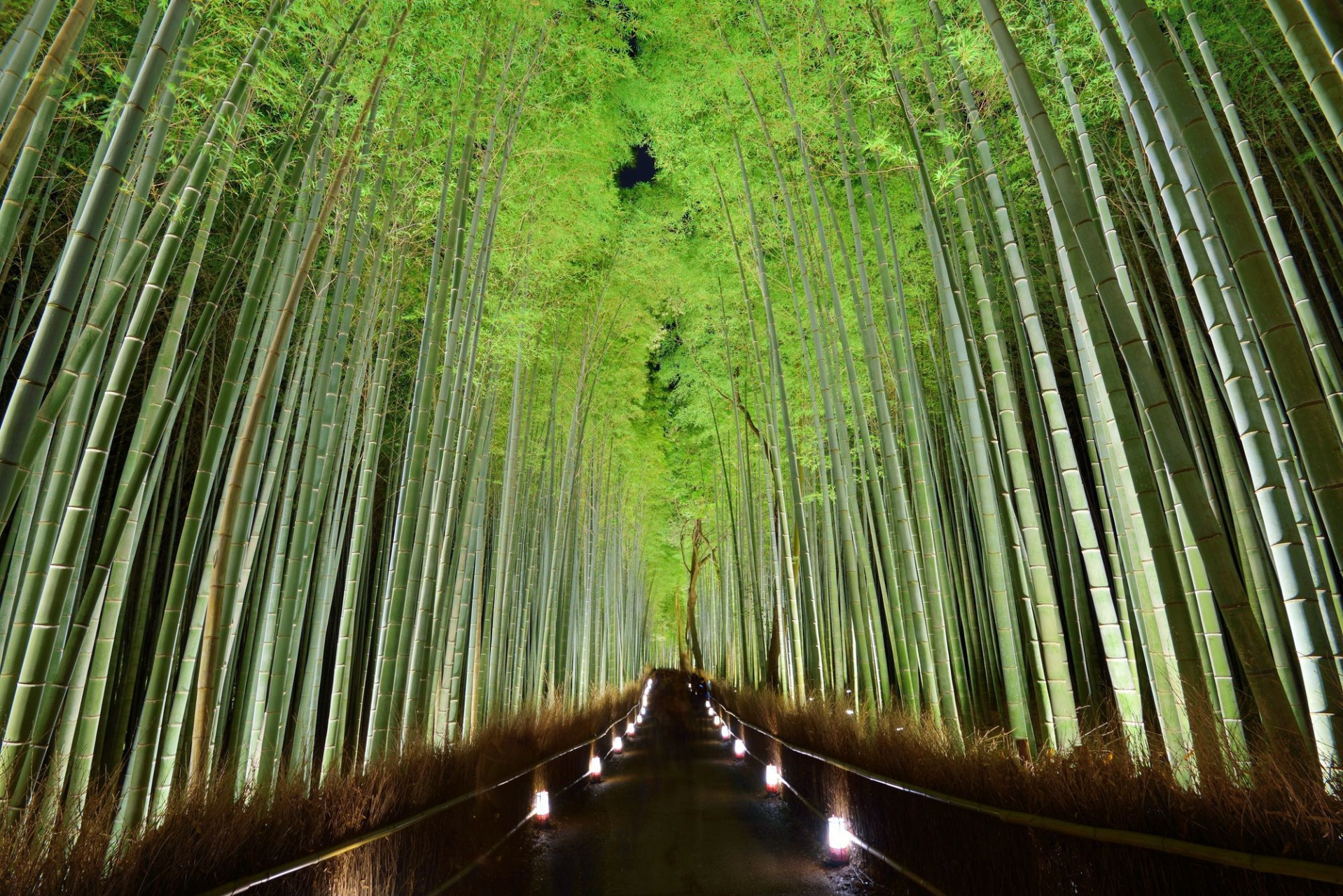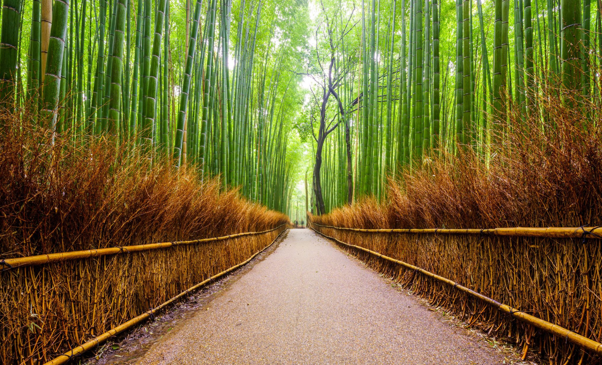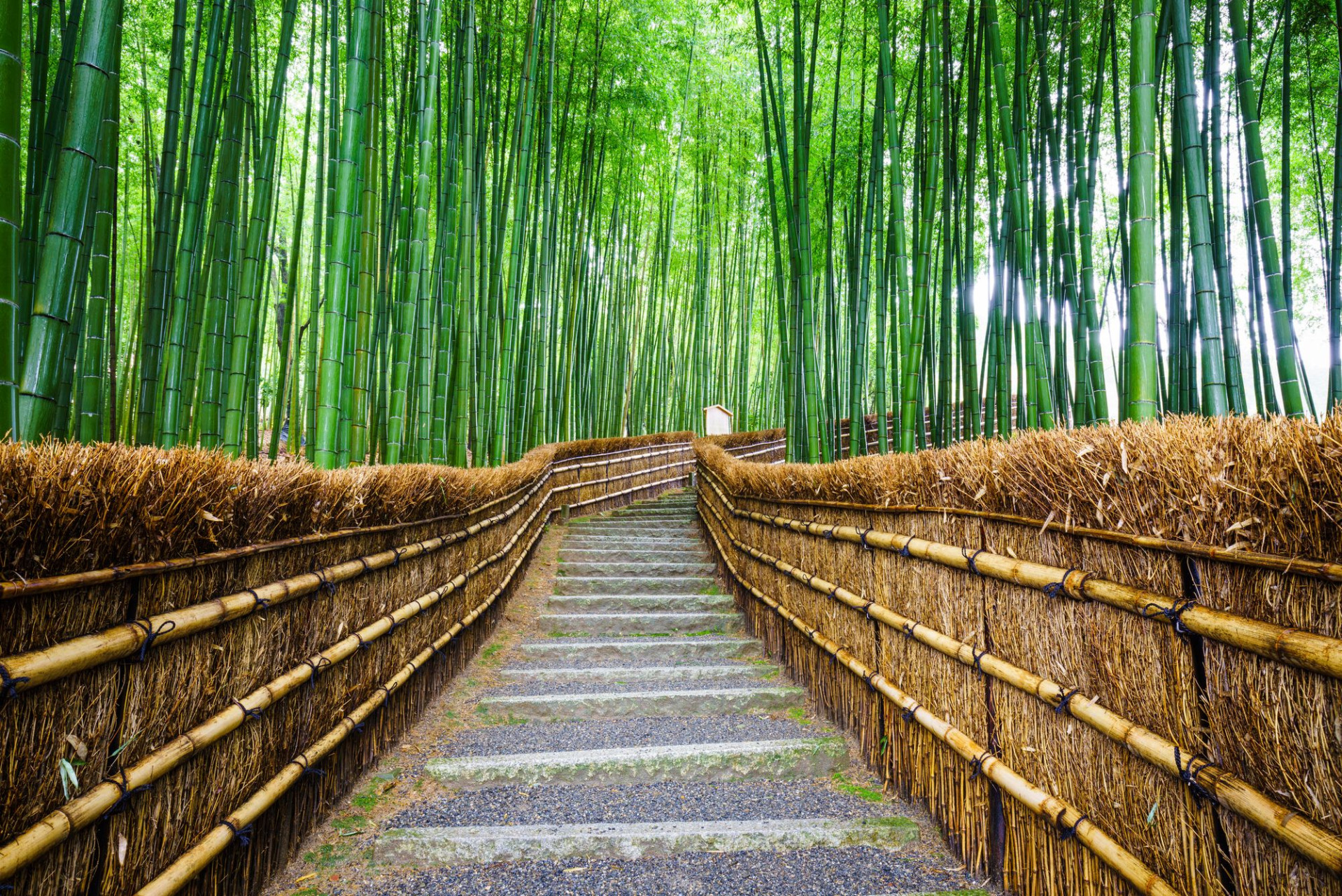 Jedním z nejfotografovanějších míst v Japonsku je tento nadpozemský háj tyčícího se bambusu. Bambusový háj Arashiyama na okraji Kjóta je obklopen chrámy a svatyněmi podél řeky Katsura a stoupá jako pěstěná oáza bambusu s vysokými příběhy, který se zdá, že mění svět zeleně. Bývalé vily a chrámy staré šlechtické třídy se nacházejí v blízkosti Arashiyama Grove a jeho jediná 500metrová cesta je obvykle plná návštěvníků třímajících fotoaparáty a selfie tyče, takže tento klidný výhled je vzácný.