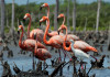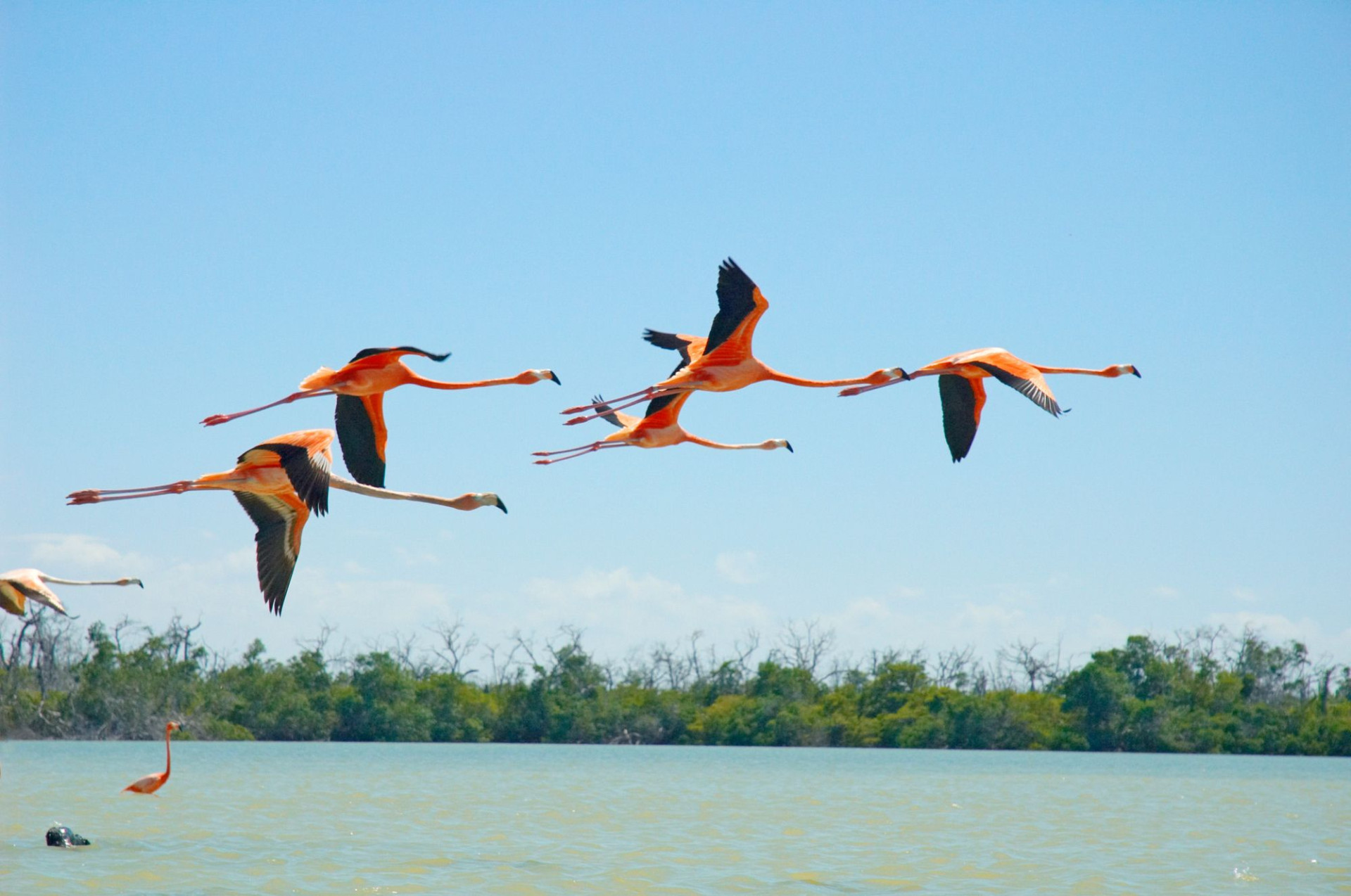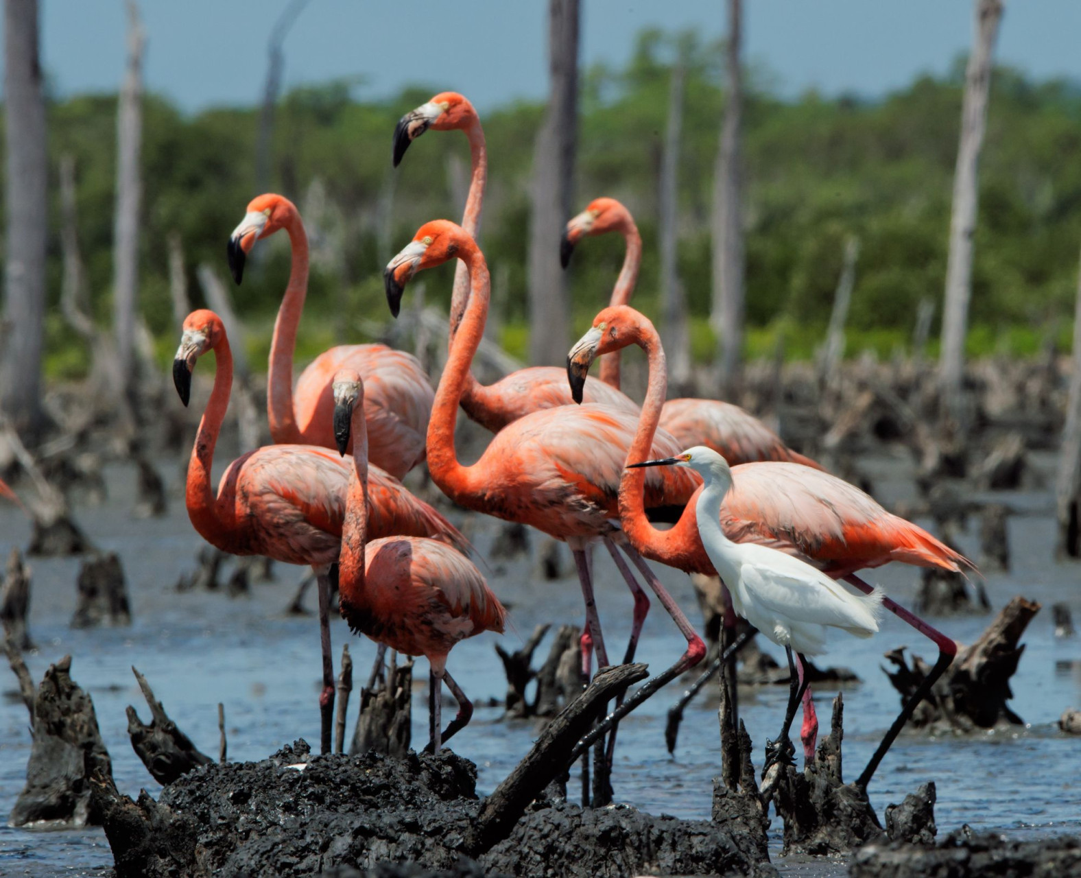A protože řasy a korýši, které konzumují, jsou naplněni růžovými pigmenty, mají plameňáci také růžovou kůži a dokonce i růžovou krev. Mléko, které produkují, aby nakrmili své mladé, je také, uhodli jste, růžové. Asi nepřekvapí, že slovo "plameňák" je odvozeno z latinského slova pro oheň. Karibský plameňák, nazývaný také americký plameňák, je zdaleka nejjasnější a jeden z největších ze všech plameňáků. Karibští plameňáci se nacházejí na jižní Floridě, Karibiku a galapágách, hlavně v lagunách, jezerech a bahnitých pláních.