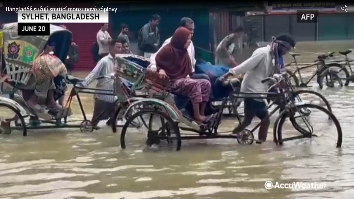 Jen v Bangladéši bylo od začátku monzunových dešťů koncem minulého týdne zabito nejméně 38 lidí, uvedl list The New York Times . Severovýchodní administrativní část Sylhetu v Bangladéši opustilo asi 4 miliony lidí, což je asi čtvrtina jeho populace.