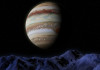 Ilustrační obrázky znázorňují pohled na Jupiter z Evropy a také mapu Měsíce Evropa