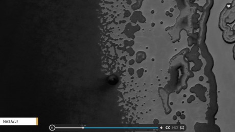 Nasa zveřejnila fascinující obrázky z Marsu. Agentura poznamenává, že tyto záběry z orbity Marsu jsou z pozdního léta pořízené na jižní hemisféře kdy je slunce nízko na obloze. Na videu vidíme spoustu mělkých jam mezi vizuálně jasným povrchem pokrytým z ledu, také nazývané Terén švýcarského sýru. Výplň tvoří hluboké kruhové formace, kde dochází k pronikání ledu do pouště. Díra mohla být vytvořená nárazem nebo propadem.