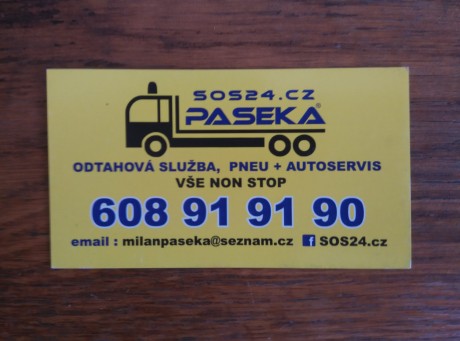 Moje auto potřebuje odtáhnout. Dostal jsem vizitku na odtahovou službu Paseka, která působí v Praze, Jihlavě, Kroměříži, ve Znojmě a dalších městech. Volal jsem jim v pátek. Volal jsem jim v sobotu. Volal jsem v neděli. Volal i v pondělí. Dnes konečně přijel ten jejich hrdina mě vodtáhnout.