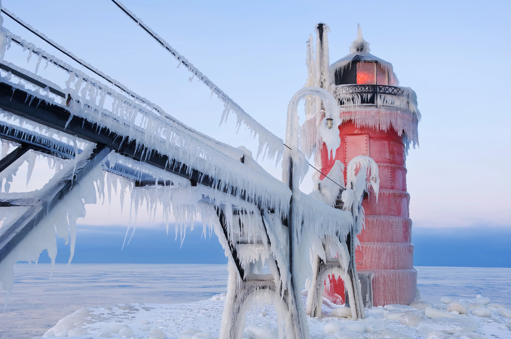 Letošní mimořádně tvrdá zima vytvořila ideální podmínky ke tvorbě ledu v oblasti všech Velkých jezer v Severní Americe. Ledová pokrývka je zde po několika teplejších zimách rekordní, ale bezesporu i ohrožuje i podniky a ekosystém.