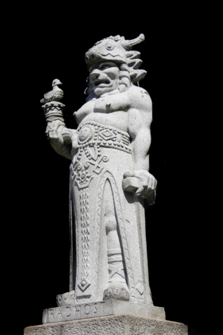 Cestou od Pusteven směrem k vrcholu hory Radhošť dojdete zhruba po půl kilometru k altánku zvanému Cyrilka, který slouží jako rozhledna. Je z ní krásný výhled na město Frenštát pod Radhoštěm, letovisko Trojanovice, známou Štramberskou Trúbu, okolní hory a za dobrého počasí je možno dohlédnout také na Lysou horu a na Slovensko. Také tato stavba pochází z posledního desetiletí předminulého století. Po dalším necelém kilometru vás cestou na Radhošť čeká další příjemná zastávka. Tou je socha pohanského boha plodnosti, úrody a pohostinnosti Radegasta. Podobu mu vtiskl v roce 1930 frenštátský rodák, sochař Albín Polášek. Vyrobil ji z umělého kamene a protože se na ní podepsal čas i vliv povětrnostních vlivů, byla nahrazena žulovou replikou. U sochy si můžete zakoupit občerstvení ve stánku, odpočinout si a pak pokračovat v cestě nahoru. Během léta se turisté rádi občerstvují také borůvkami, které rostou okolo stezky. K vrcholu Radhoště (1129 m n.m.) je to od sochy Radegasta ještě necelé 3 km. Čeká vás tam krásná dřevěná kaple, zasvěcená sv. Cyrilu a Metoději v roce 1898. Nejprve však přijdete k bronzovému sousoší těchto věrozvěstů z roku 1931. Jeho autorem je opět Albín Polášek, v té době žijící a tvořící v americkém Chicagu. V interiéru kaple můžeme obdivovat především kopii triptychu Valašské Madony v lidovém kroji od malíře Adolfa Liebschera, dále vitráže v oknech s výjevy ze života významných českých světců. Na zvonici kaple je vyhlídka s nádherným rozhledem na okolní hory. Kuriozitou je také skutečnost, že tímto místem prochází evropské rozvodí a například voda ze severního okapu poteče přes řeku Odru do Baltského moře, zatímco z jižního přes Moravu do Dunaje a z něj do moře Černého. V době letních prázdnin je kaple otevřena denně od 9 do 14 hodin, pokud je nepříznivé počasí, je svatostánek uzavřen. Na počasí je závislá i otvírací doba v ostatních měsících roku, takže najít kapli otevřenou je spíše o náhodě a štěstí.
