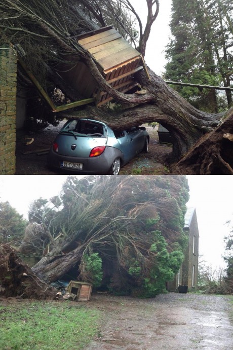Před chvilkou mi dcera poslala tyhle 2 fotografie, je to kousek od ní, je tam strašný vítr, což je vidět i na synoptických mapách. Já jsem si to zrovna říkala, že to tam musí být hrozné. Tomu stromu bylo přes 100let, ještěže v autě nikdo nebyl, je vidět SPZ Corku. Opravdu chudáci lidé. Buďme rádi, že se tu skoro nic neděje.Celý jih a jihozápad Irska je na tom zle.