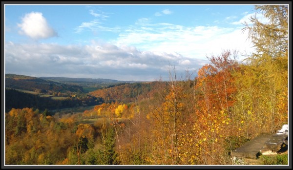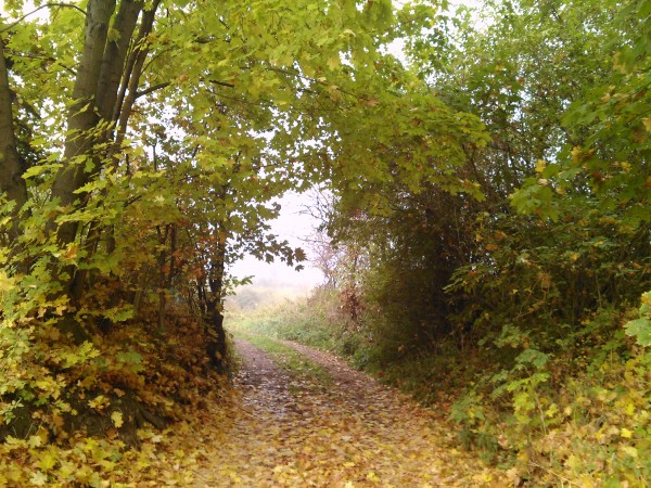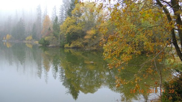 Podzimní vodopád.CestaPodzimní mlha na Plešném jezeře
